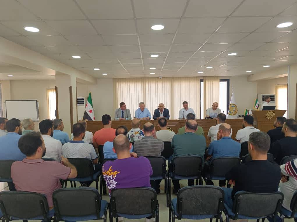 اجتماع غرفة صناعة حلب للمشاركين بمعرض خان الحرير موتكس