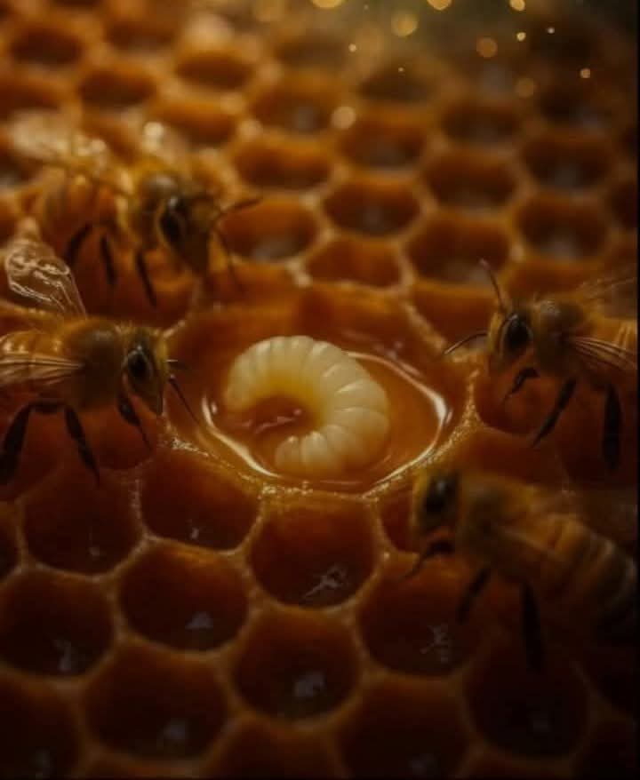 تختار عاملات النحل بعض اليرقات العادية – تلك التي كانت ستصبح عاملات عاديات في الظروف الطبيعية. لم تولد بشيء مميز.