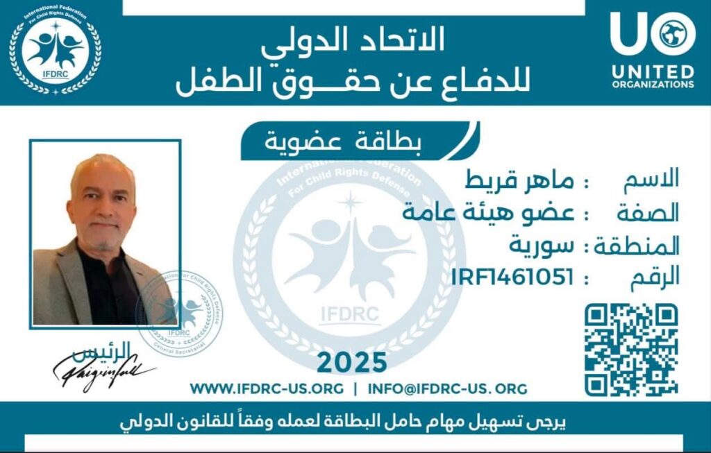 بعد حصوله على عضوية الاتحاد الدولي لحقوق الطفل.. ماهر قريط لـ”أسامينا”: فخر لي للدفاع عن أطفال بلدي