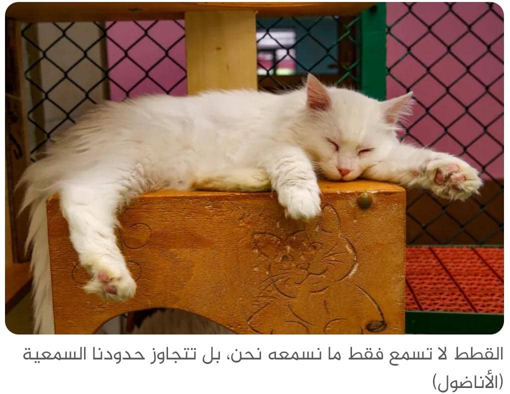 وهي لا تسمع فقط ما نسمعه نحن، بل تتجاوز حدودنا السمعية، ففي حين يتوقف سمع الإنسان عند تردد نحو 20 ألف هرتز، تستطيع القطة التقاط أصوات تصل إلى 65 ألف هرتز، أي 4 أضعاف قدرتنا تقريبا. هذا يعني أن صرير فأر يسير في العشب أو جناح حشرة صغيرة يمكن أن يحدث “ضوضاء” في عالمها لا نسمعها نحن مطلقا.