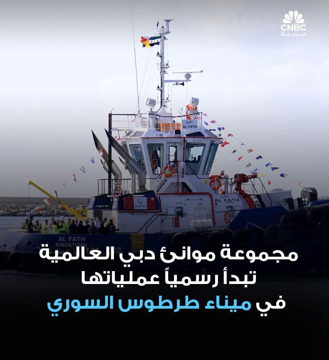 مجموعة موانئ دبي العالمية “دي بي ورلد”، تباشر عملياتها في ميناء طرطوس السوري، مع دخول قاطرة الميناء الجديدة “الفتح” إلى الخدمة، وذلك بعد تسلم الميناء رسمياً من هيئة المنافذ البرية والبحرية، بحسب بيان صادر عن الشركة الإماراتية اليوم